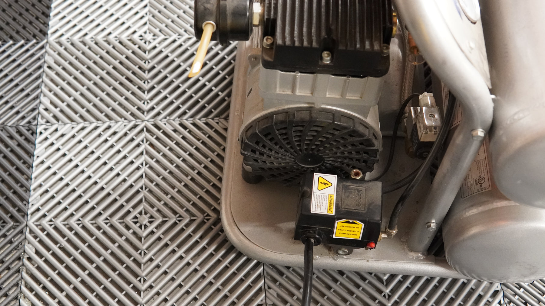 LOW AMP DRAW: Operating at 14 amps, this air compressor is compatible with 110v / 60hz outlets; additional features: thermal overload protection, and pressure control gauges for convenience; product dimensions: L (19.1") x W/D (16.7") x H (19.7"). UL Certified.